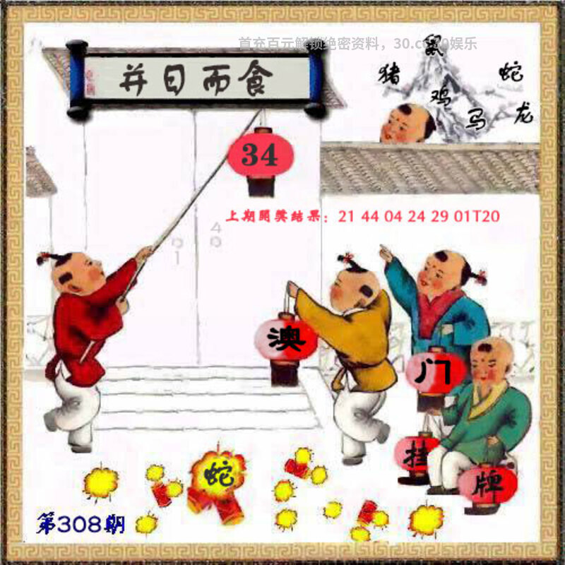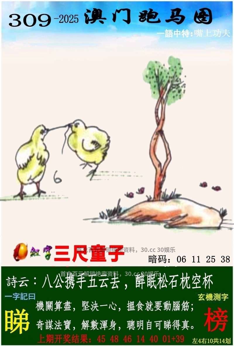 309期:开奖时间2025年11月05(星期三)晚9:30开(农历九月十六 虎冲猴)